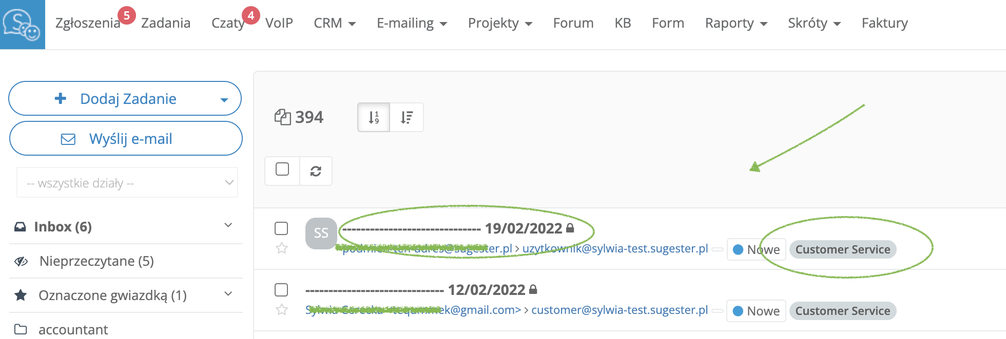 Każda skrzynka musi być podpięta do odpowiedniego działu, do tego działu muszą mieć też dostęp użytkownicy, którzy skrzynkę obsługują. Trzeba pamiętać, że użytkownicy pracujący w dziale 1 mają mieć w ustawieniach profilu użytkownika zaznaczone "dział 1", a użytkownicy z działu 2 analogicznie - "dział 2".