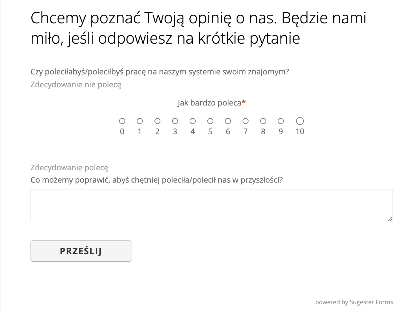 Czy polecił(a)byś nasz produkt/usługi swoim znajomym? W skali od 1 do 10.