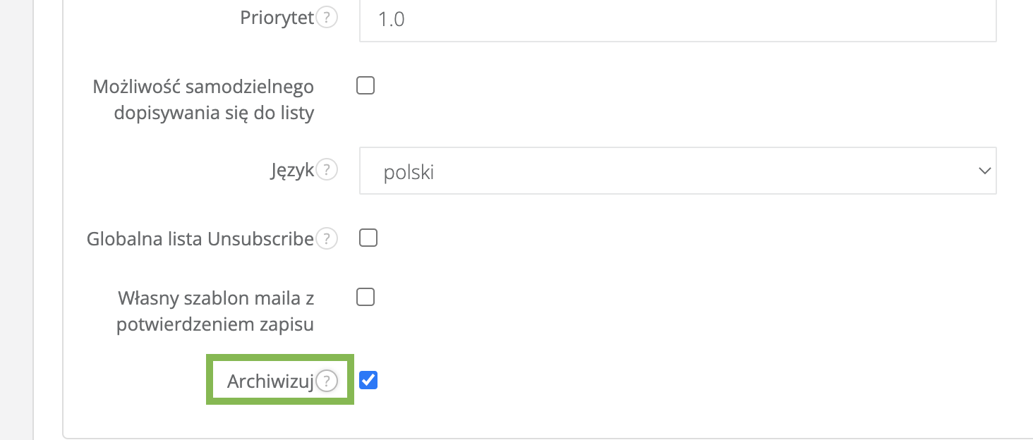 W Sugesterze istnieje możliwość archiwizowania list odbiorców. Jeśli wysłaliśmy mailing dla danej listy odbiorców okazjonalnie i nie będziemy w najbliższym czasie z tej listy korzystać, możemy ją zarchiwizować. Dzięki temu na głównej liście mamy tylko aktywne i aktualne listy odbiorców. Łatwiej dotrzeć do wybranej listy odbiorców, jeśli nie musimy się przebijać przez pozycje, które nie są w danym momencie aktualne.