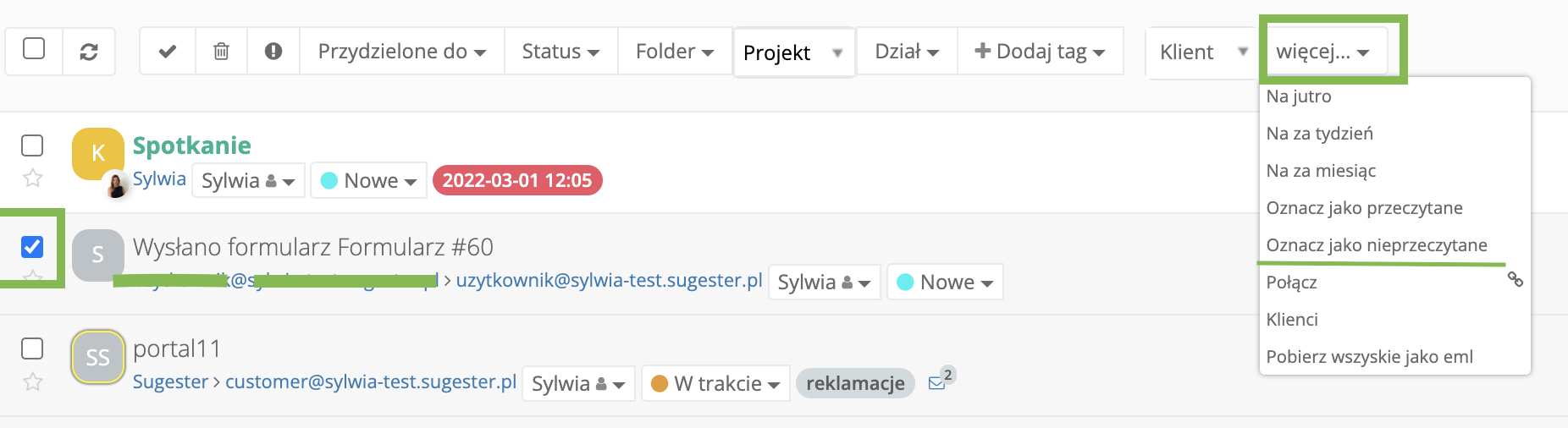 W Sugesterze istnieje kilka miejsc, z których można oznaczyć wiadomość po przeczytaniu jako