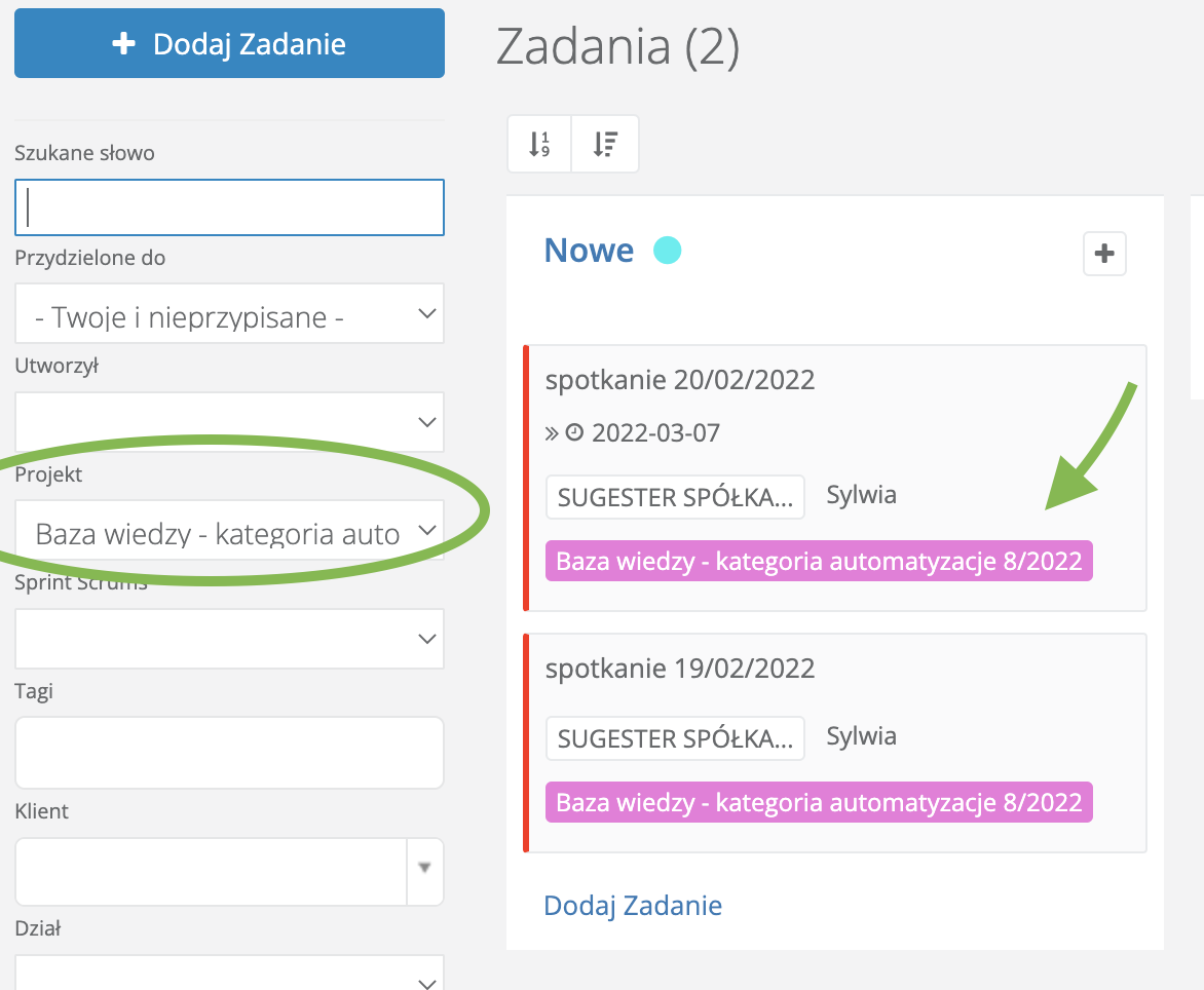 Można też użyć kilku ustalonych kolorów, by oznaczać kolorami projekty np długoterminowe lub dla klientów VIP i in.