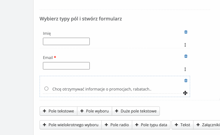 - przesunąć wybrane pole w dowolne miejsce w formularzu