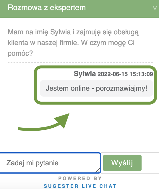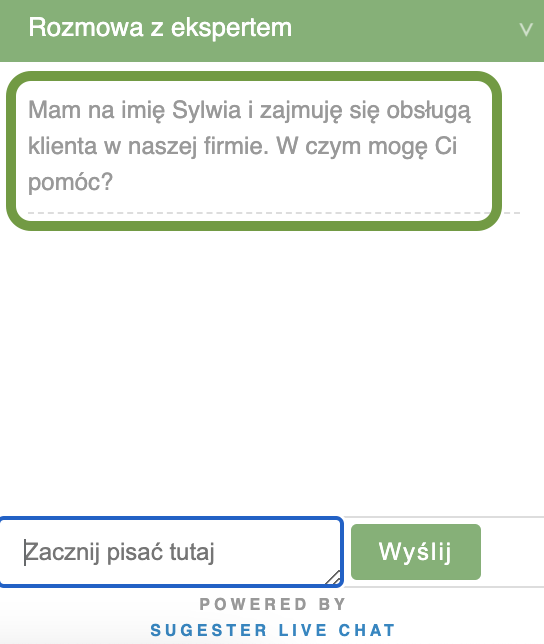 Zanim zaczniemy na dobre korzystać z funkcji czatu w Sugesterze warto poświęcić uwagę na stworzenie w okienku czatu spersonalizowanych treści, które nie tylko zachęcą odwiedzających naszą stronę do rozpoczęcia rozmowy, ale też będą dawać jasny komunikat co klient uzyska, zaczynając rozmowę.