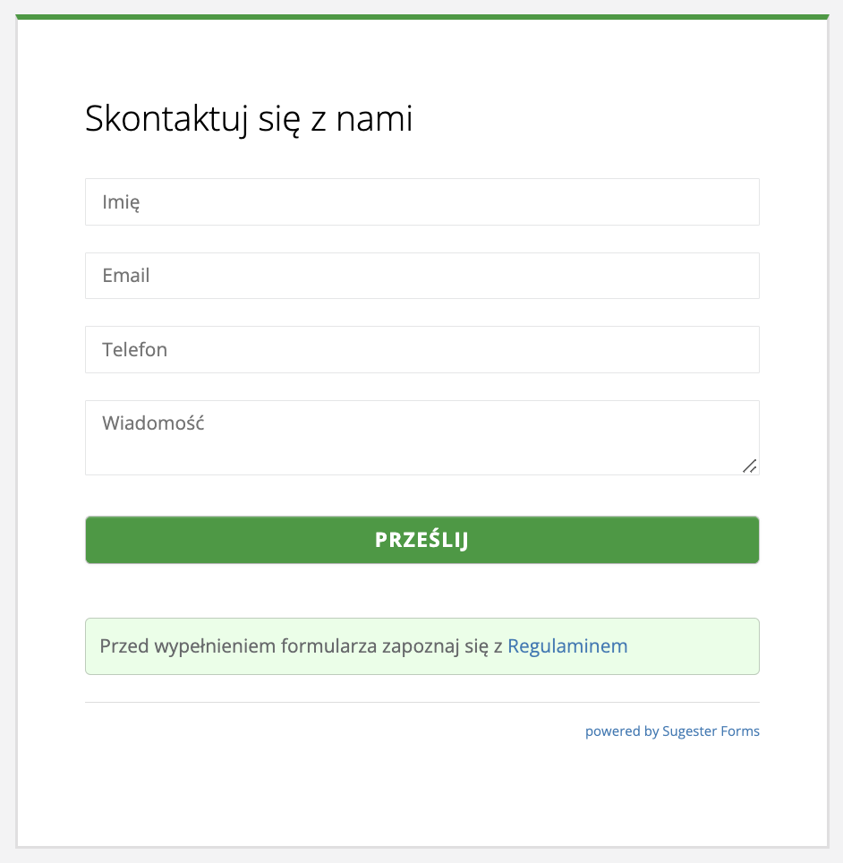 1. Prosty formularz kontaktowy z linkiem do strony z regulaminem