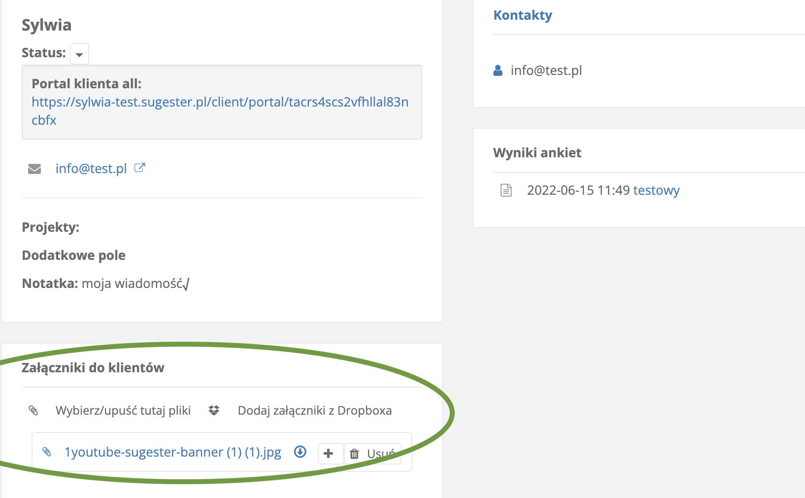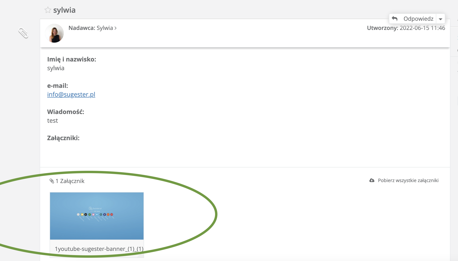 W zależności od wybranego sposobu mapowania, przesłane pliki będą dodane w sekcji "załączniki"