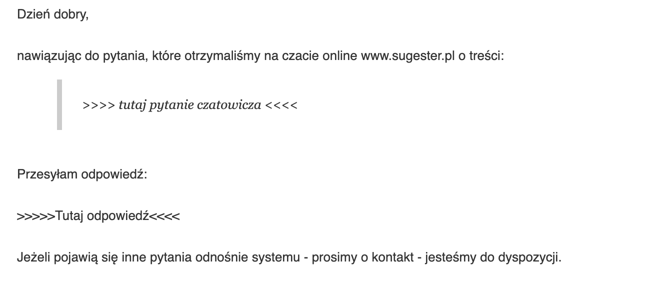 szablon maila dla odpowiedzi na czacie.