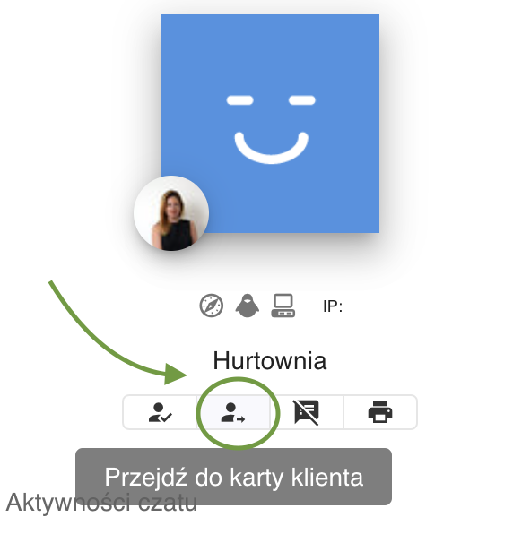 - z poziomu czatu przejść do karty klienta za pomocą przycisku "Przejdź do karty klienta"