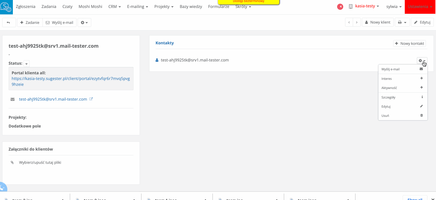 Klikając na poszczególny adres email z listy zostaniemy przeniesieni do podglądu danego kontaktu, gdzie będzie można dokonać zmian, by adres odbiorcy był poprawny.