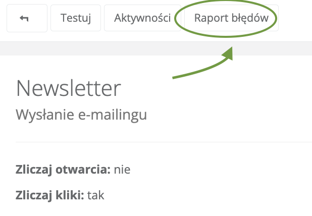 W podglądzie każdej kampanii mailingowej dostępny jest raport błędów kampanii.