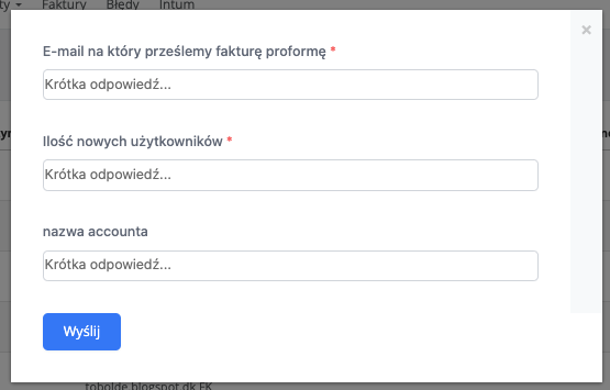 W odpowiedzi na zgłoszenie zostanie przesłana faktura proforma, którą należy opłacić przed dodaniem użytkownika.