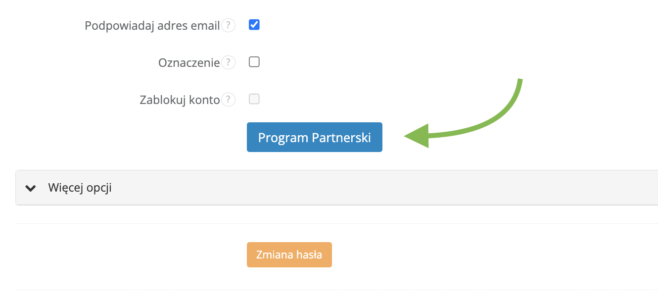 3. Kliknąć niebieski przycisk "Program partnerski"