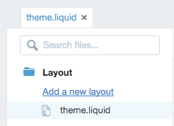- Z listy komponentów po lewej stronie wybierz główny plik Twojego szablonu - w naszym przykładzie nazywa się on theme.liquid.