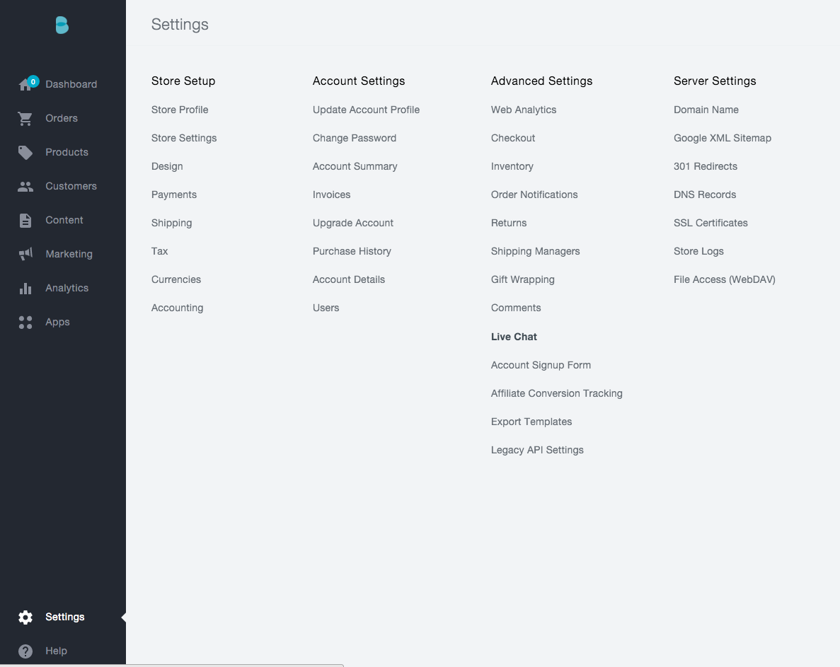 Aby dodać Sugester live chat do Twojego sklepu w platformie Bigcommerce wykonaj następujące kroki: