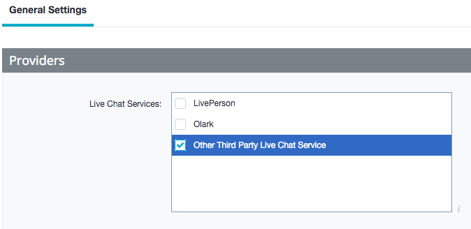 - Na liście, która się pojawi, zaznacz Other Third Party Live Chat Service.