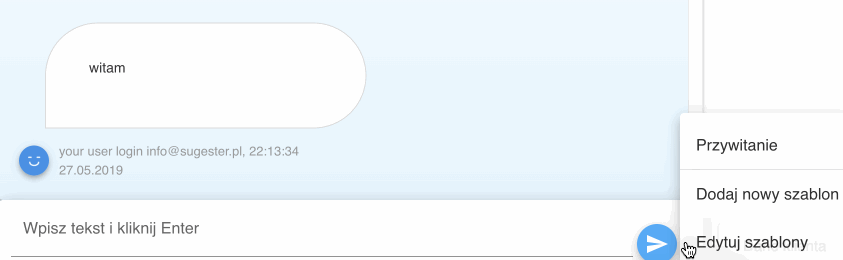 Rozmowy z klientami często zawierają powtarzalne elementy - powitania, pożegnania czy odpowiedzi na popularne pytania. Żeby zaoszczędzić czas, można stworzyć w Sugesterze kilka szablonów odpowiedzi, a potem wykorzystywać je podczas rozmów na czacie. W ten sposób zamiast wielokrotnie wpisywać tę samą treść wystarczy nacisnąć jeden przycisk.