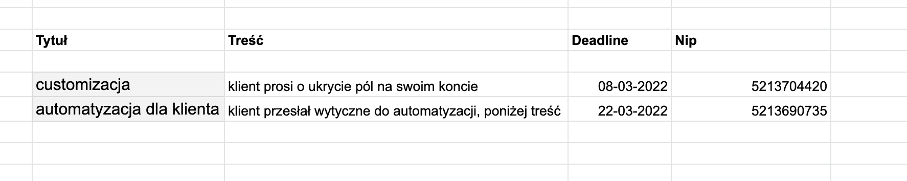 - Tytuł - informacje z tej kolumny będą tytułem zadania w Sugesterze